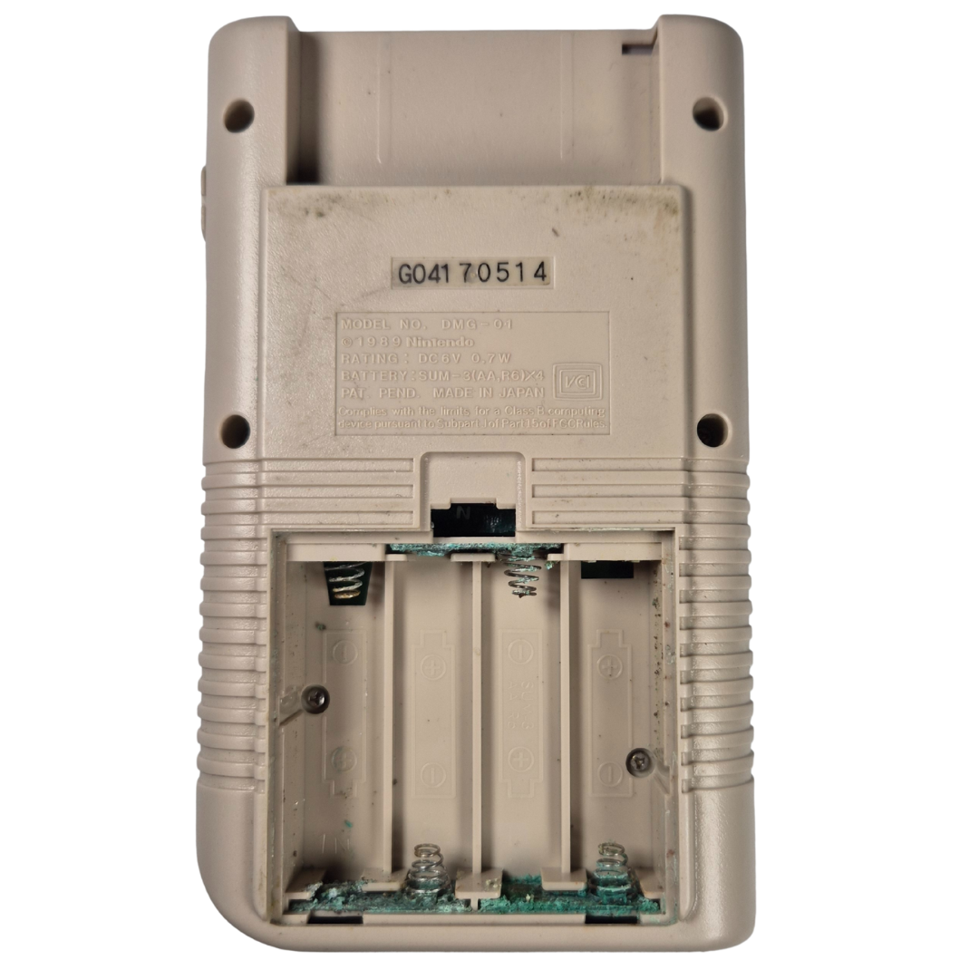 - Defekte : Keine Displayscheibe / Gameboy geht nicht an / Batteriesäure auf den Kontakten ( oder auch noch an anderen Stellen ) / Sound kann nicht getestet werden / Kontrast kann nicht getestet werden / Ob Spiele laden kann nicht getestet werden / Kein Batteriedeckel