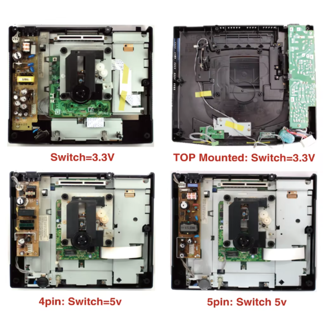 Die Installation ist unkompliziert und erfordert keine Änderungen an der Konsole. Der originale Einschaltknopf der SEGA Saturn wird weiterhin verwendet. Das Netzteil wird über ein externes 12V / 3A Netzteil betrieben (im Lieferumfang enthalten).
